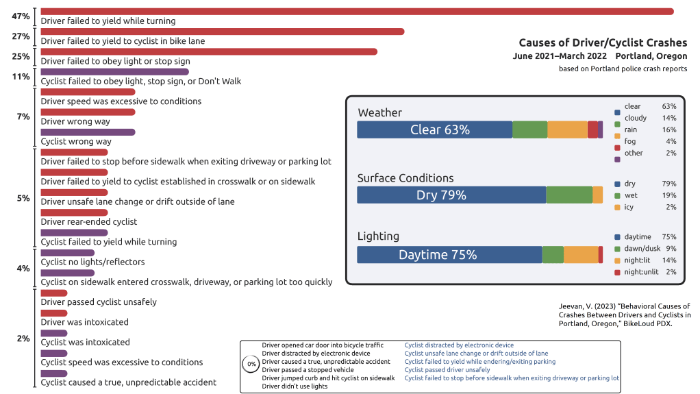 2023: Behavioral causes of CRASHES between drivers and CYCLISTS in Portland, Oregon.